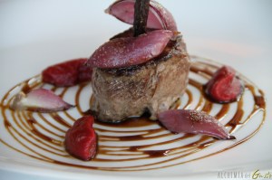 MEDAGLIONE DI CINGHIALE ALLA LIQUIRIZIA CON CIPOLLE ROSSE E PUREA DI RAPA