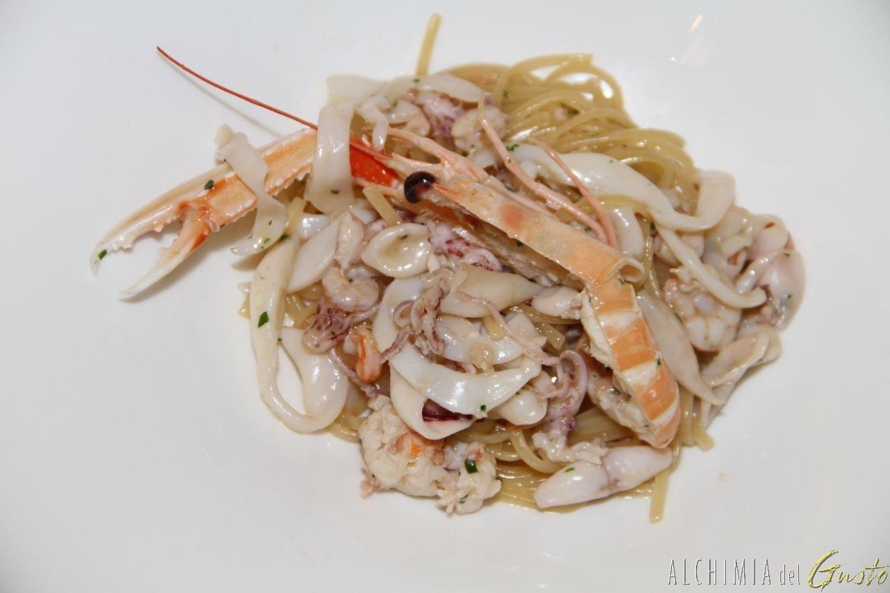 Bavette sul pesce – Piatto Storico Pasta risottata con scampetti, totanini, seppiette e gamberetti biondi