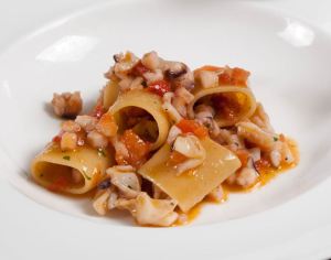 Mezzi paccheri dei pastai Gragnanesi alla viareggina con frutti di mare e pesce