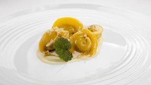 Cappellacci ai cardi fonduta noccile salate e rafano