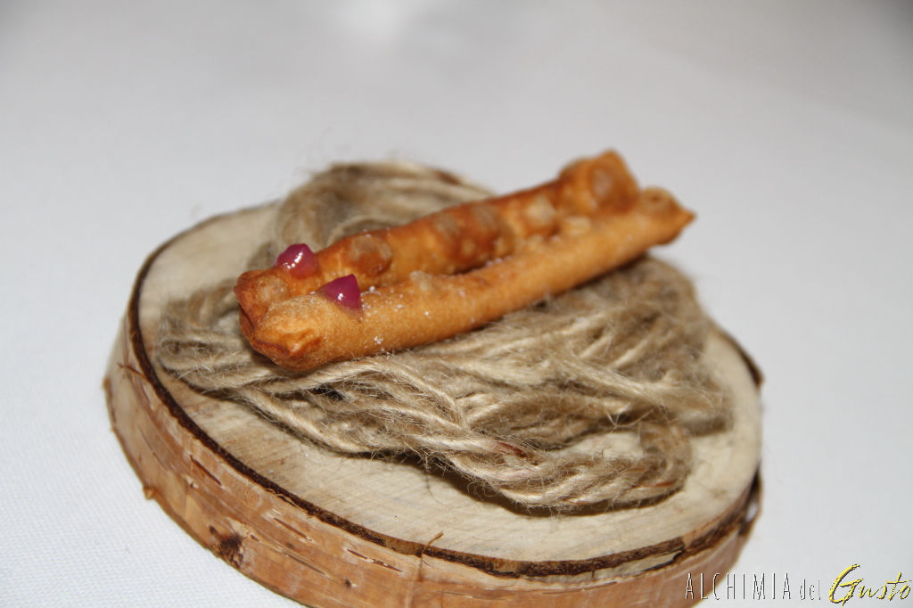 Sigaretta con ragù di verdure e gelatina all’aceto
