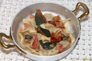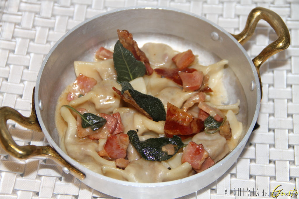 Casoncelli bergamaschi fatti in casa . Burro, salvia e pancetta croccante