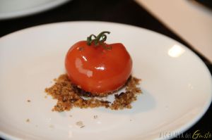 Finto pomodoro ripieno di tartare di gambero