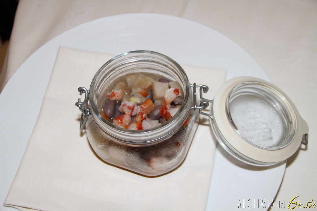 Zuppetta di fagioli borlotti e astice. € 27,00