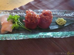 Gunkan Tuna Out: Tonno esterno, tartar di tonno piccante