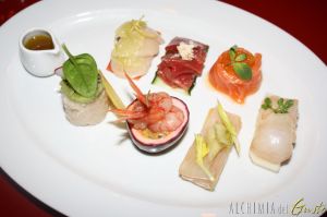 Crudo di mare con frutta e verdurine, olio limone e soia