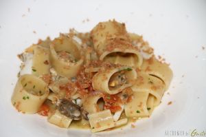 Mezzi Paccheri, calamaretti, vongole e bottarga di tonno