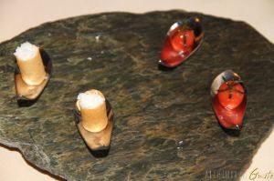 Croccante pasta brick con mousse di parmigiano – ricomposizione del pomodorino ripieno di coppa di pomodoro