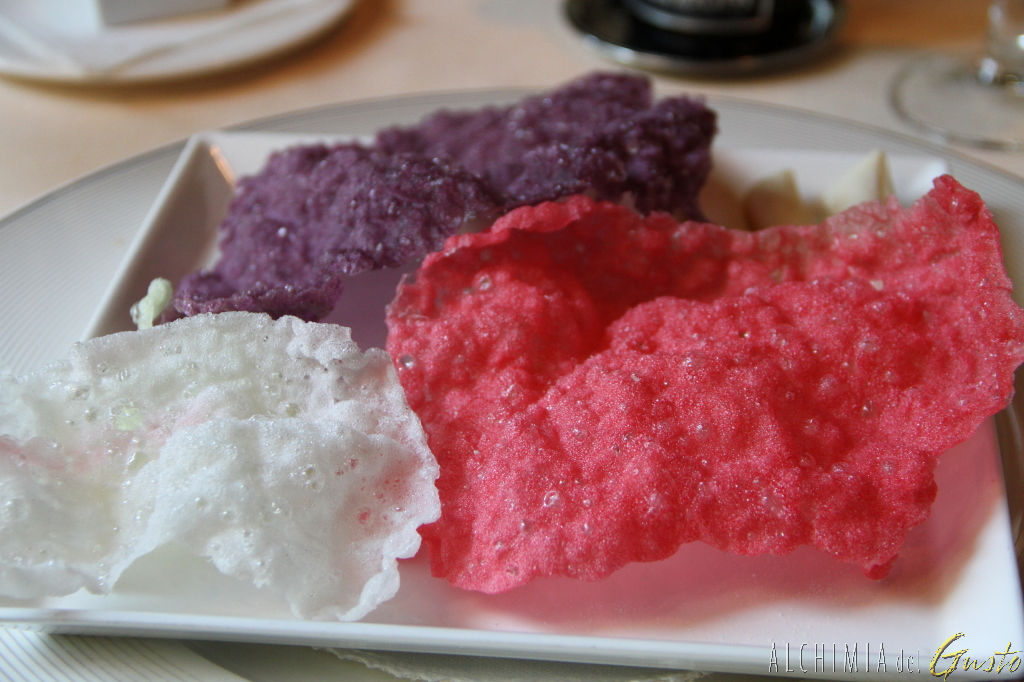 Chips olio di oliva, al nero di seppia, barbabietola