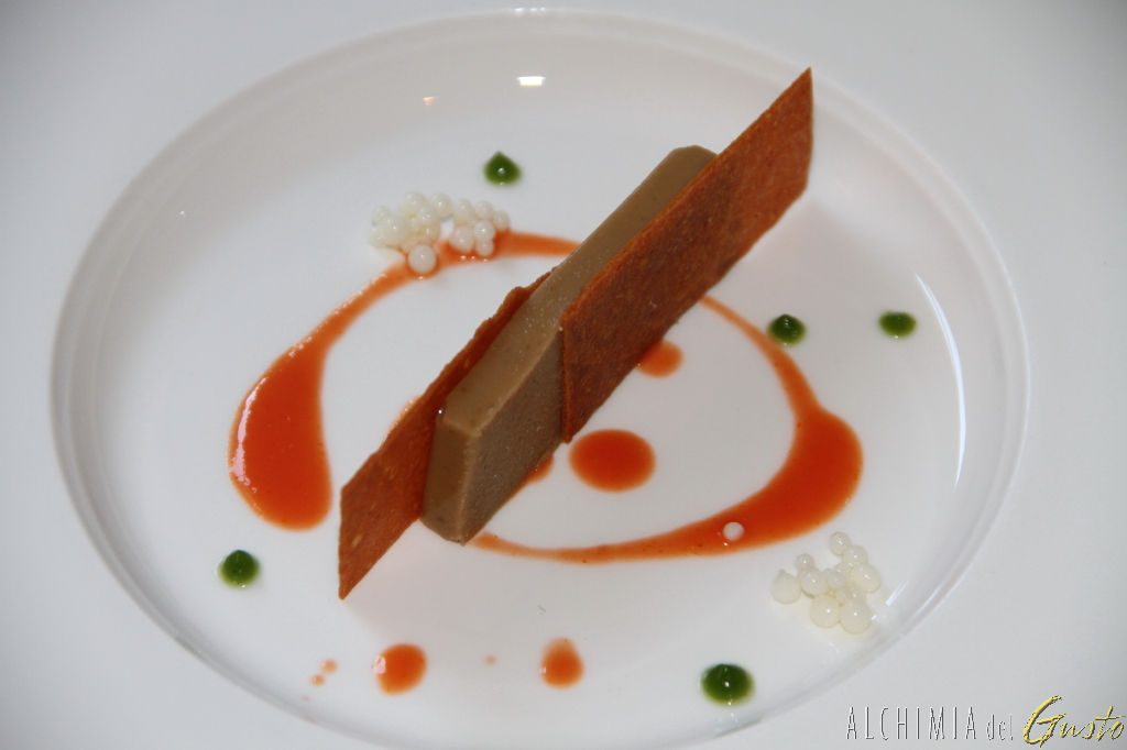 Terrina di melanzane con croccante di parmigiano ed emulsione di pomodoro e basilico