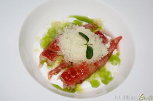 Gambero rosso marinato, cocco, granita all’ananas e olio alla menta