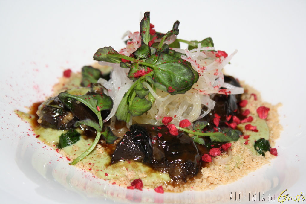 Lumache, yogurt alle erbe e lamponi disidratati