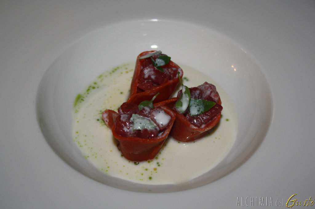 Ravioli al pomodoro con crema di latte