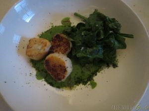 Capesante arrostite, Vellutata Di Lattuga e Foglie Scottate