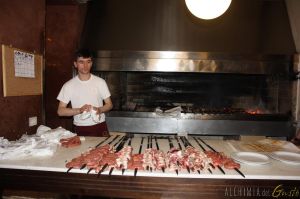 Tipica macelleria dove ordini la carne, te la cucinano e te la mangi al tavolo sul posto con del vino locale.. Noterete i buonissimi gnimirid