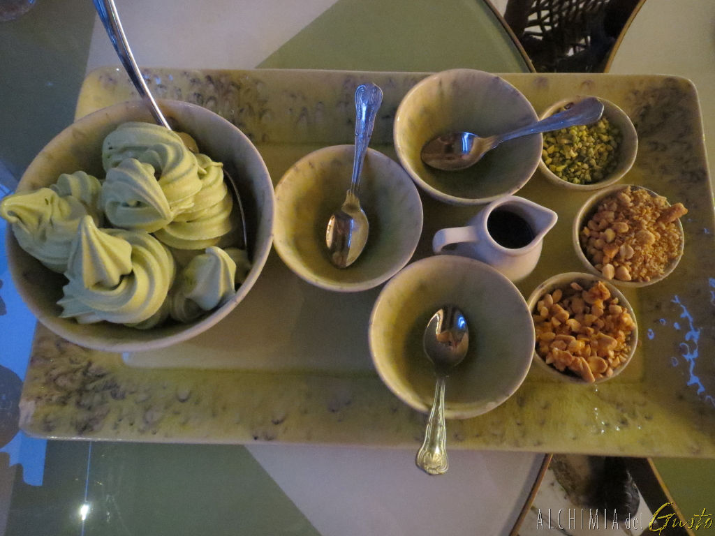 Gelato al te verde con granelle e cioccolato fuso..da comporre