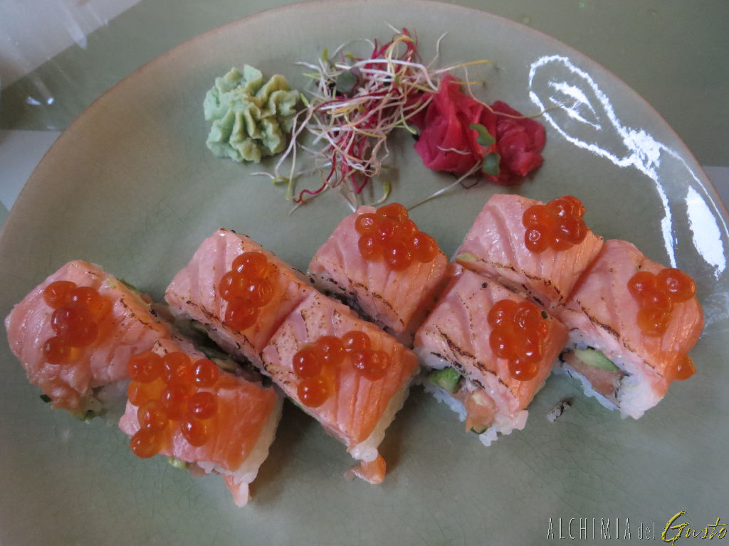 PIONEIRO: tartar di salmone, salmone scottato, avocado erba cipollina, uova di pesce volante e uova di salmone