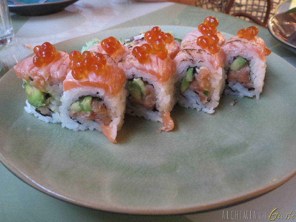 PIONEIRO: tartar di salmone, salmone scottato, avocado erba cipollina, uova di pesce volante e uova di salmone