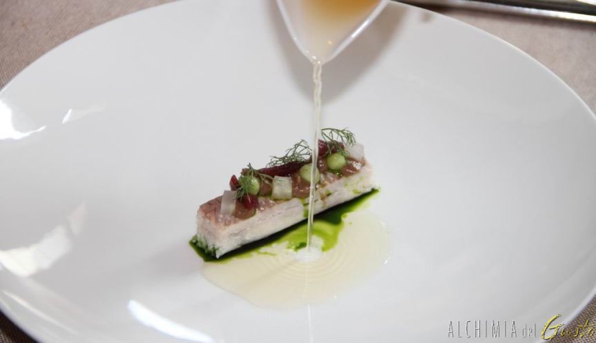 La cucina di Acquaroli parte dal territorio ed è fatta di ricerca, grande tecnica e fantasia, preparazioni coraggiosamente azzardate ma tutte ben riuscite e di materia prima di ottima qualità
