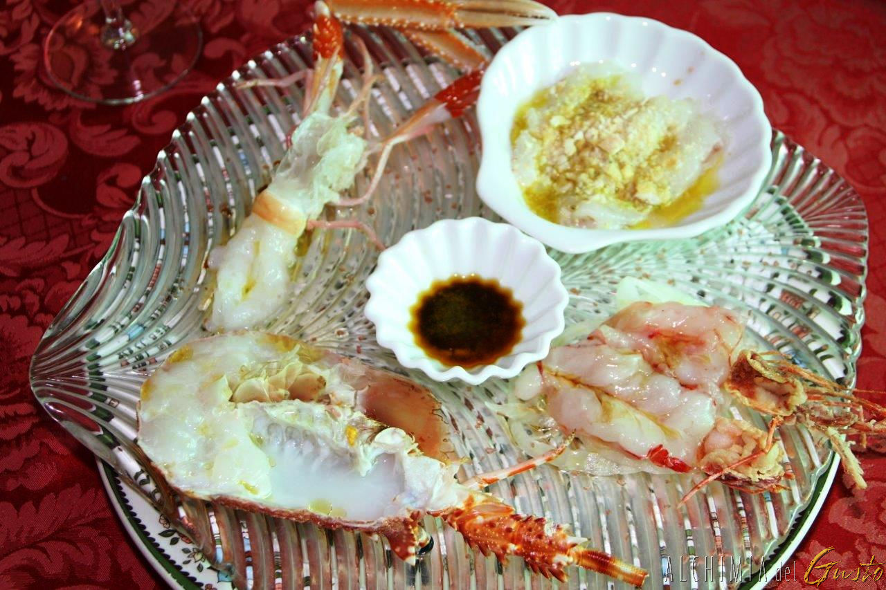 Il crudo: aragostella, scampi, gamberi