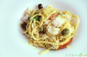 Pasta fresca fatta in casa: Chitarra al ragù di pesce ed olive taggiasche