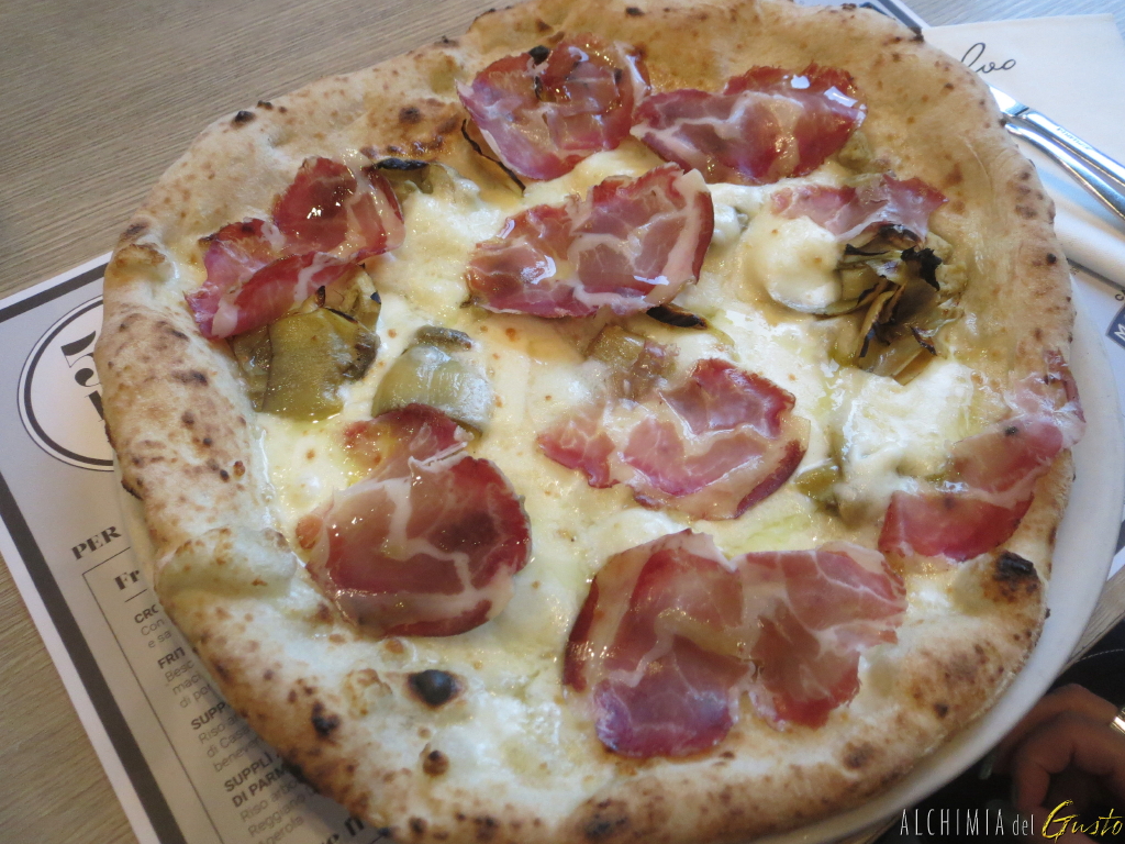 Bianca con carciofi, capocollo di Martina Franca e fior di latte di Agerola