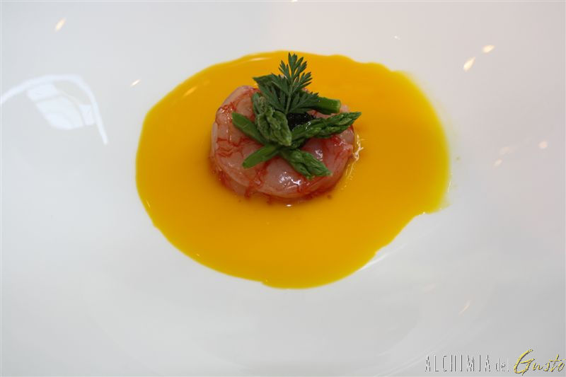 15) “Crudo di gamberi con caviale e crema di tuorli d’uovo di Paolo Parisi”
