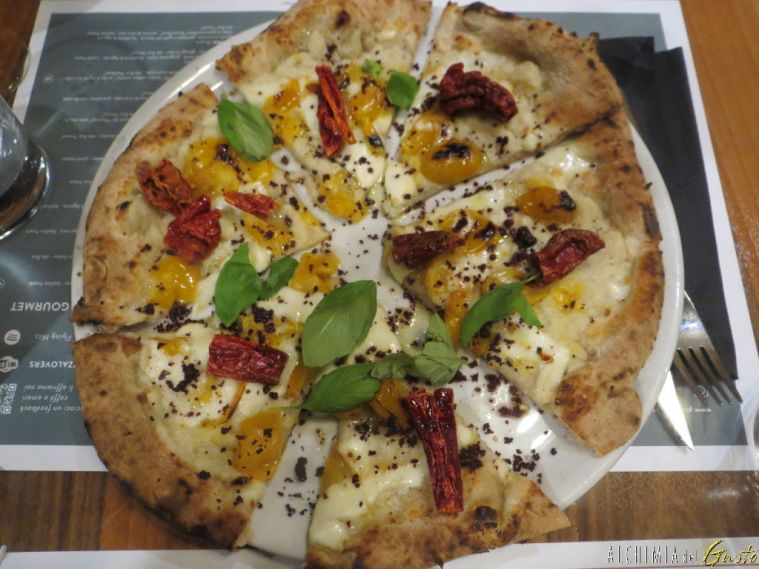 Ne ho gustate due quella che più mi è piaciuta è stata la Lucana con baccalà mantecato, una bontà nonostante il cornicione basso e sgonfio.