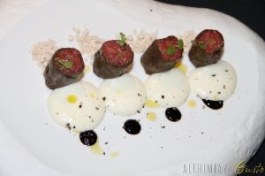 Susci di manzo fassona, tartufo, parmigiano e aceto balsamico invecchiato