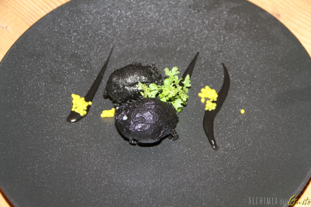Cappesante Total Black: al nero di seppia e crema di patate