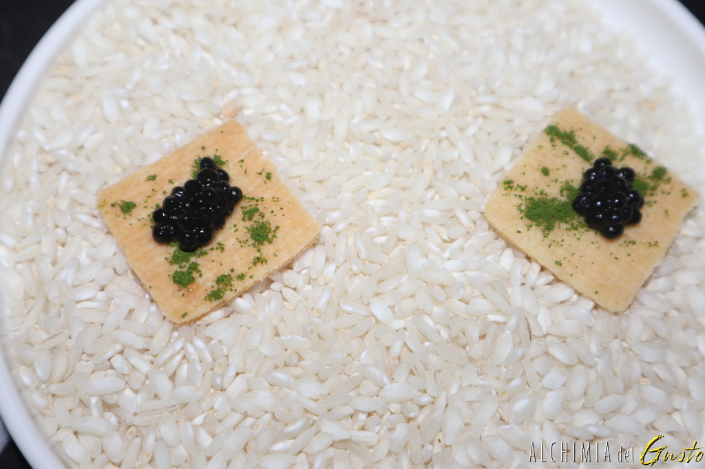 Biscotto al grano padano con perlage tartufo nero e polvere di alloro