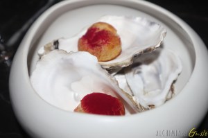 Bignè ripieno di quartirolo e polvere di barbabietola