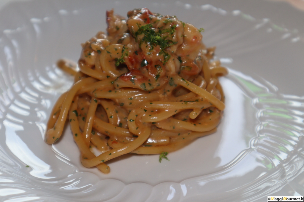 Spaghettone all’astice bretone e lime (piatto storico dal 1965)