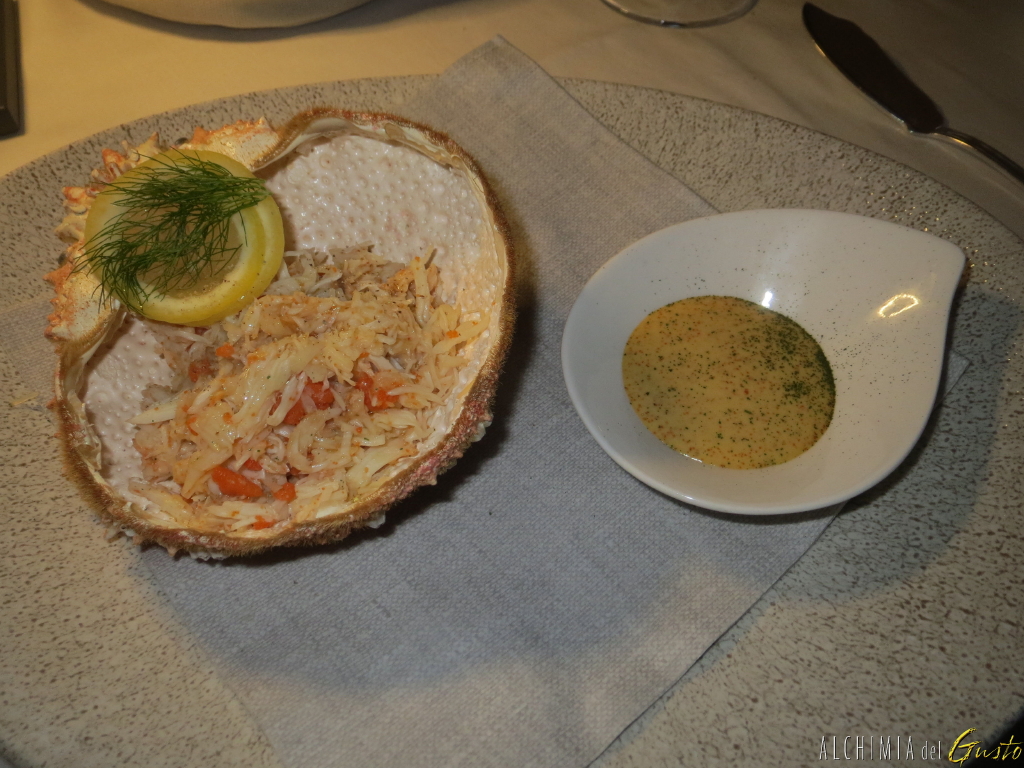 Granceola del mare Adriatico al naturale con salsa al corallo