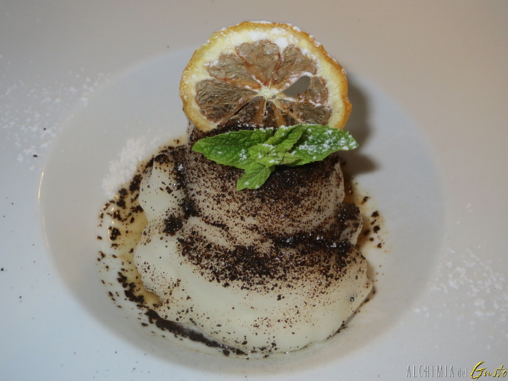 Un fresco sorbetto di limone, polvere di liquirizia e menta fresca