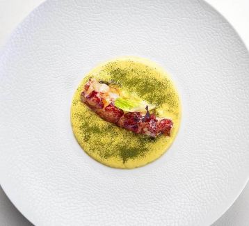 La sua cucina non disdegna, non lo ha mai fatto, una concentrazione talvolta persino violenta dei sapori, un procedere per tinte forti, ma sempre con la misura di chi conosce bene i propri mezzi e sa fino a quale limite spingersi.