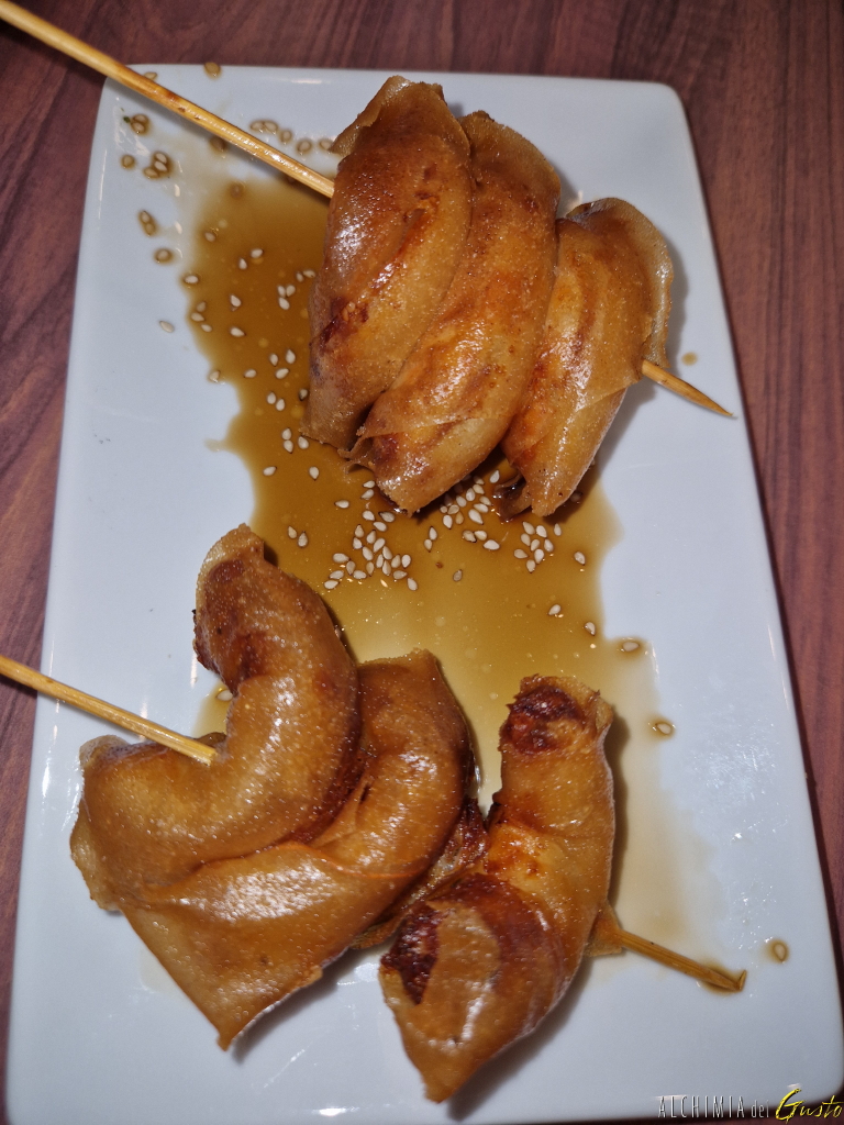 Pintxos: crocchette croccanti ai gamberi e salsa di soia