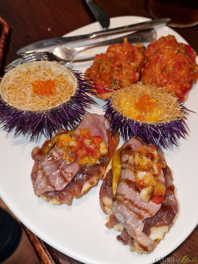 Pintxos all’anitra..ai peperoni e pomodori e fantastici ricci al forno