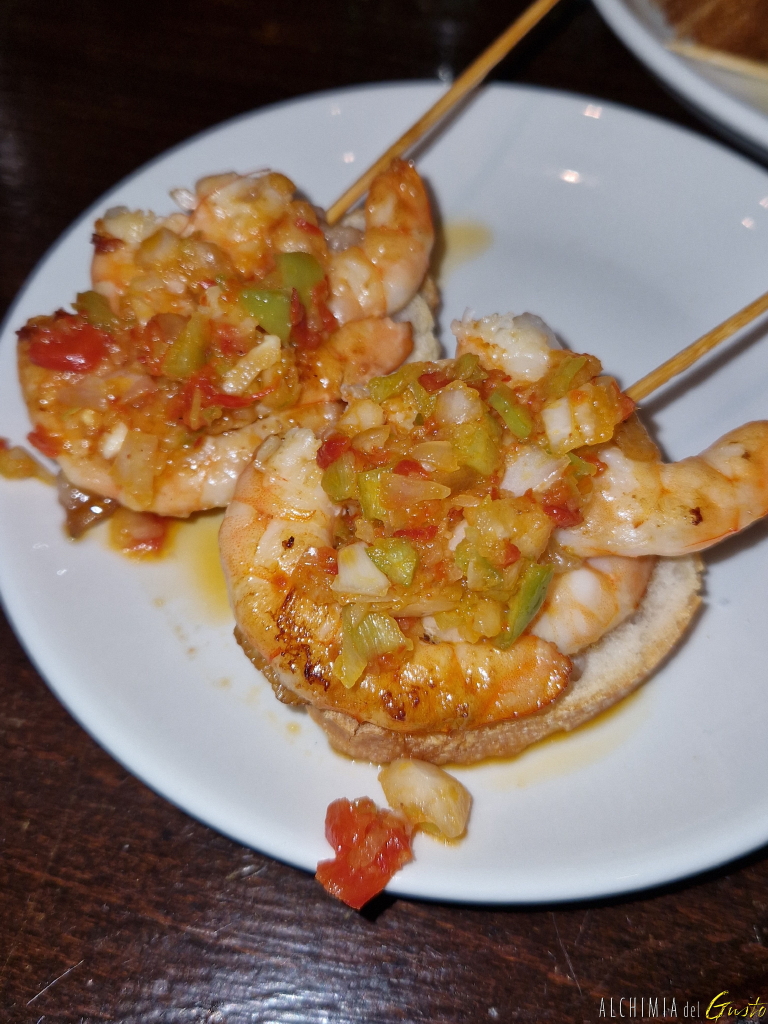 Brocheta gambas.. Pintxos con spiedini di gamberi