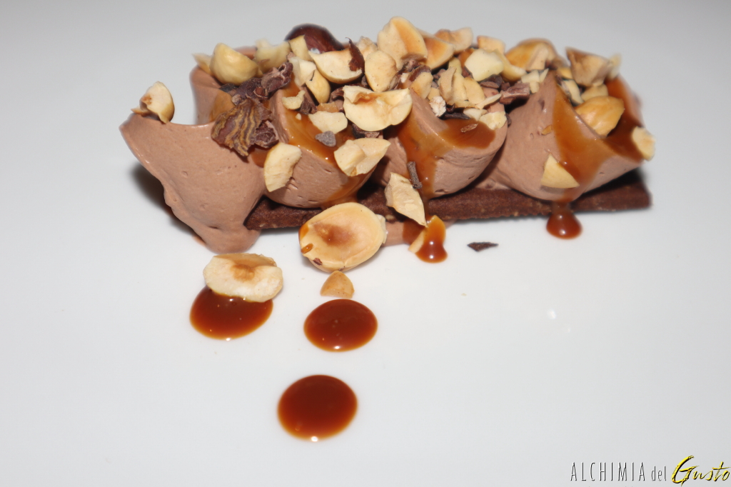 Ganache al cioccolato, caramello salato e nocciole