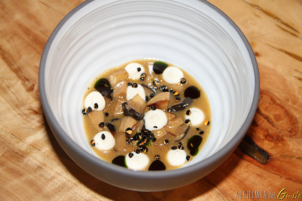 FUNGO CARDONCELLO brace, ricotta, consommè all’olio d’Argan
