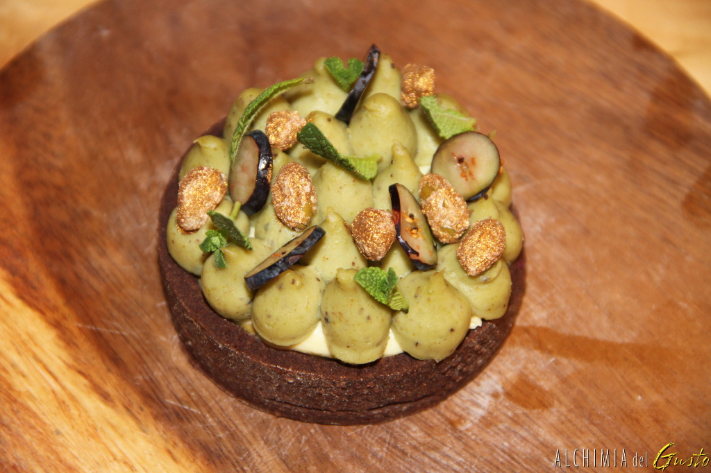 ..la Frolla, cacao fava tonka, cremoso al Jalapeño e pistacchio pralinato.