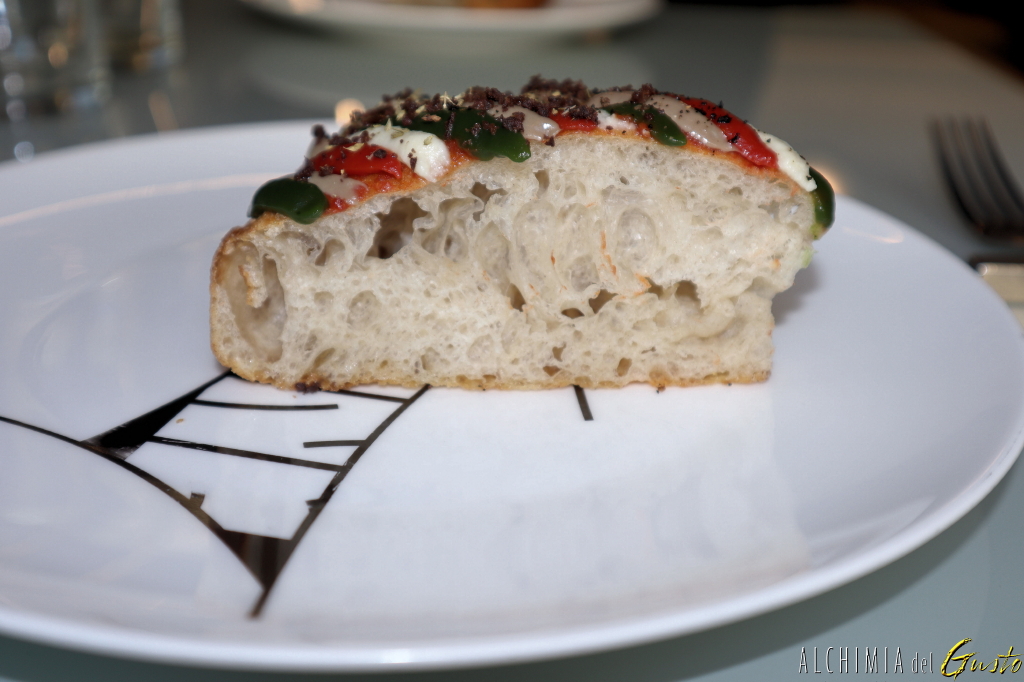 UMAMINARA (padellino) Alla base polpa di San Marzano affumicato, gel di basilico, aglio rosso di Nubia, crema di datterino rosso di Sicilia, pasta di alici, origano fermentato