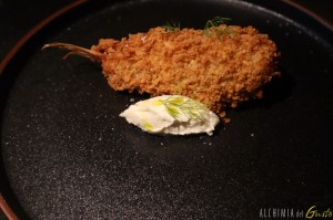 TRIGLIA E PROVOLA: Triglia ripiena di gamberi, fonduta di provola ed estratto di basilico