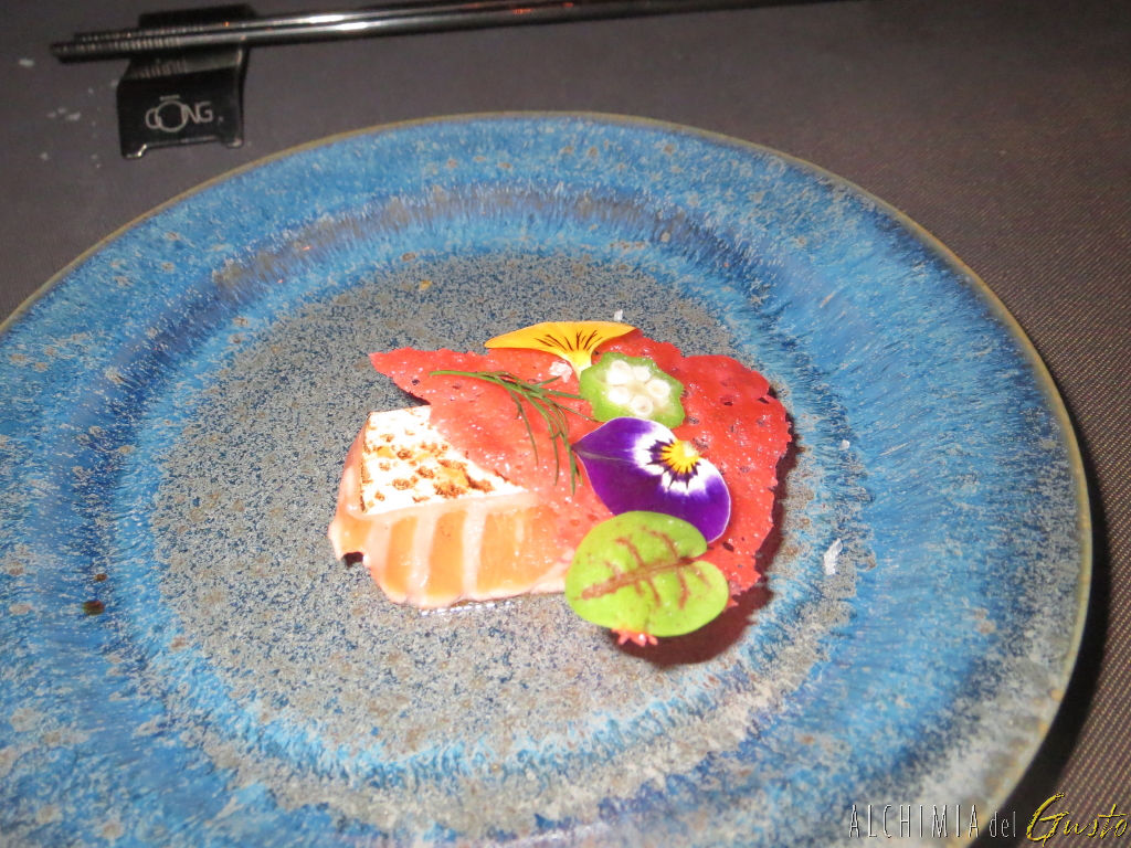 Salmone con cips di barbabietola