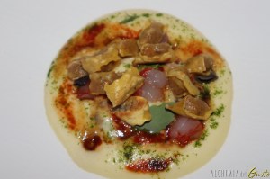 Plin di agnello ai carboni, zuppa forte, crudo di gamberi rossi .