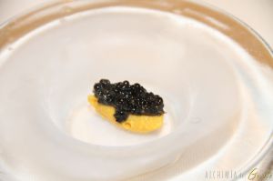 Caviale affumicato su zabaione ghiacciato (caldo, freddo – dolce , salato)